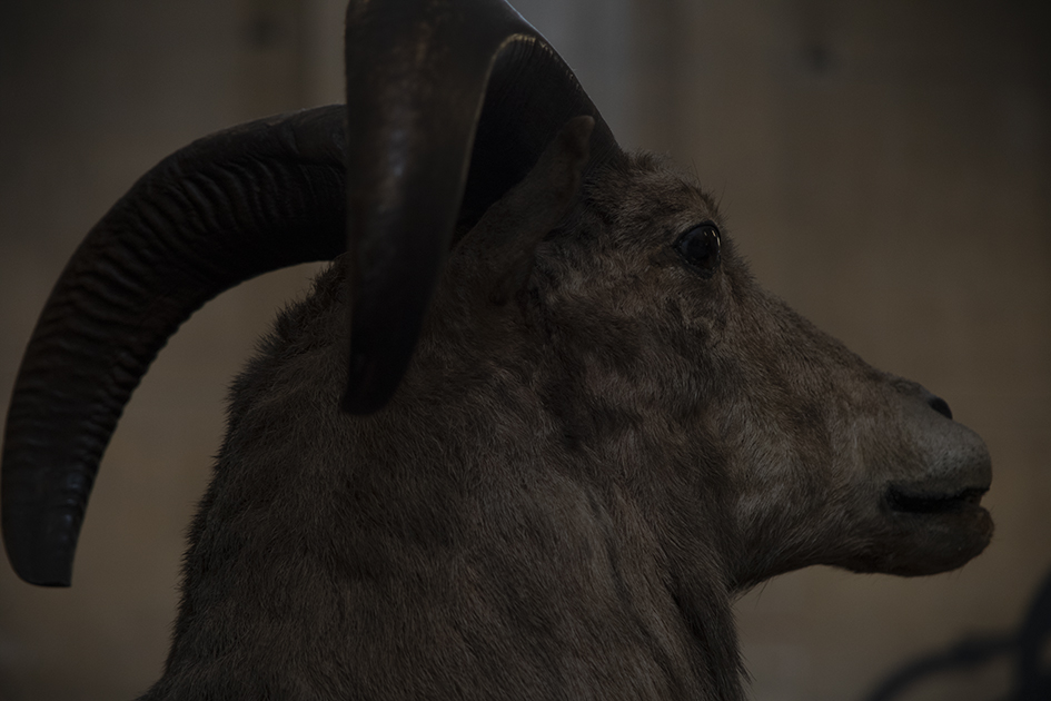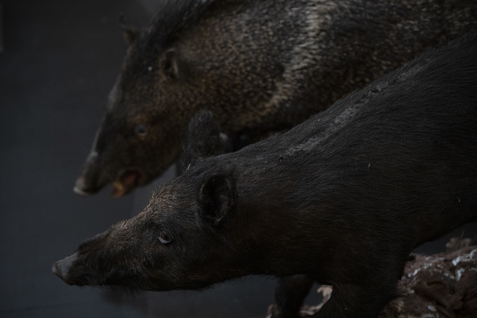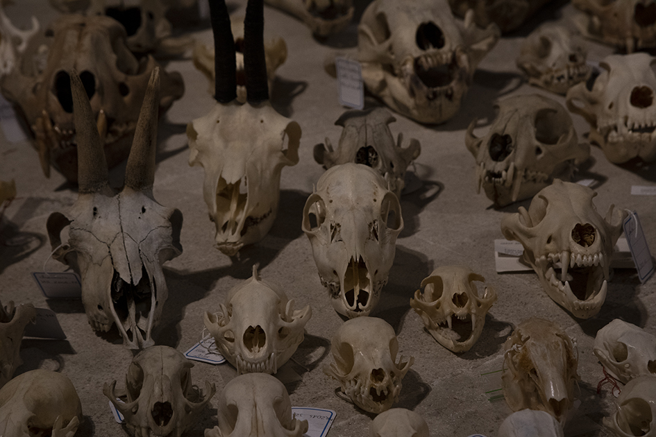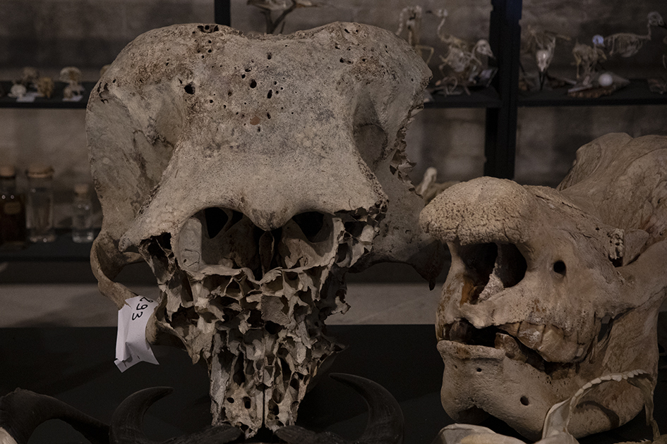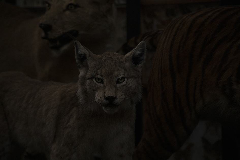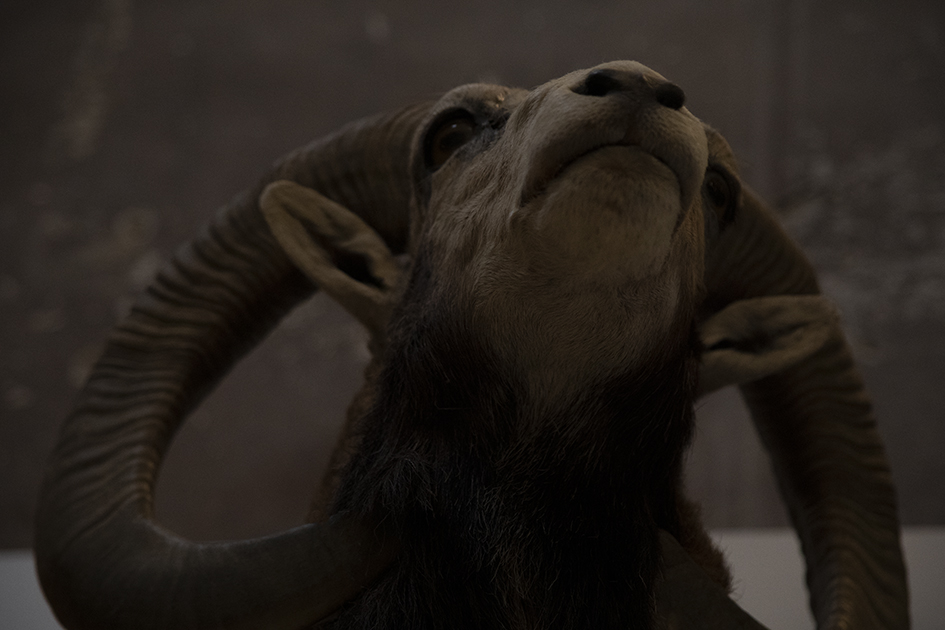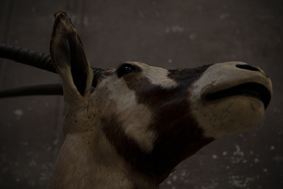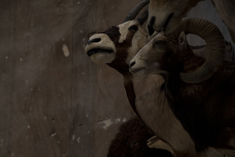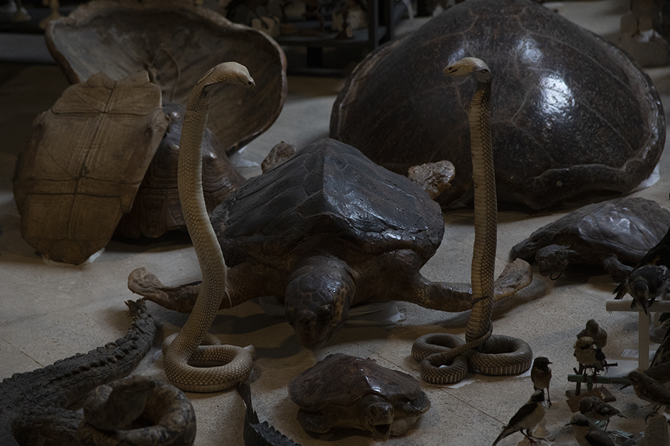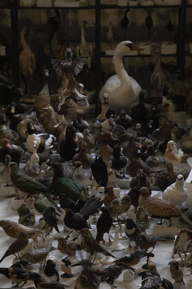 Cette série photographique propose moins de rendre compte du déballage saisissant et intelligent du conservateur que de faire état de ma mélancolie : l’exposition navigue entre l’arche de Noé (bien qu’incomplète, l’accumulation des espèces invite à prendre la mesure de la diversité des formes de vie et l’urgence de leur préservation) et l’avertissement crépusculaire de l’anéantissement de ces dernières.