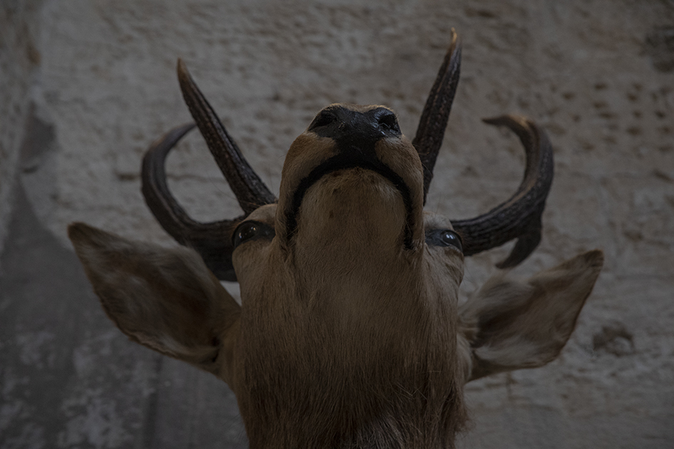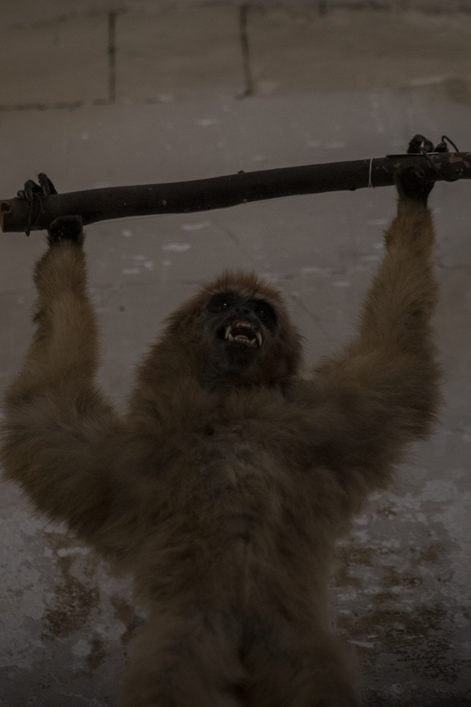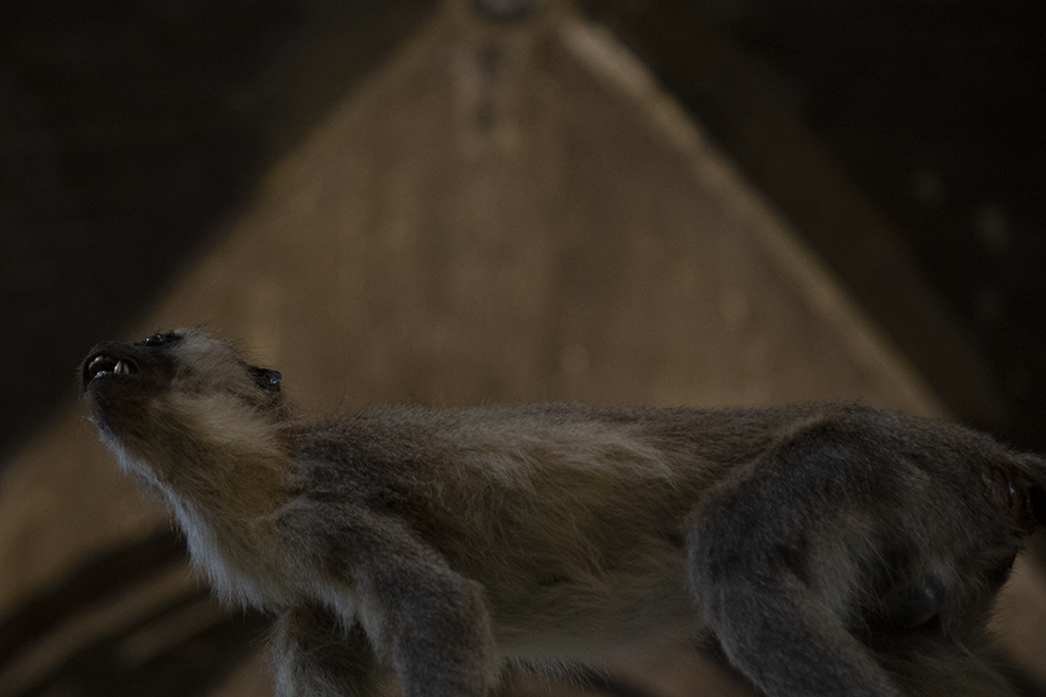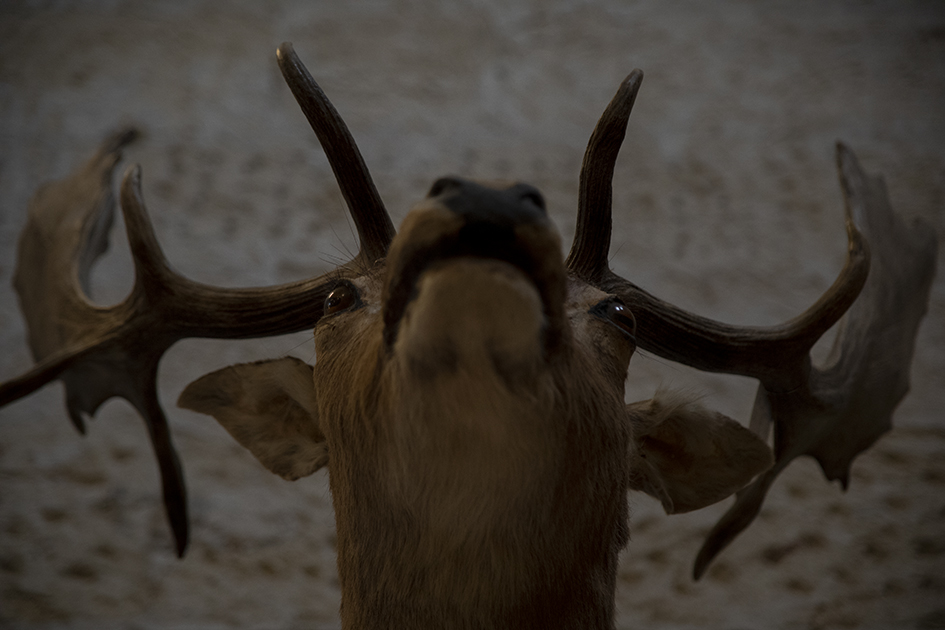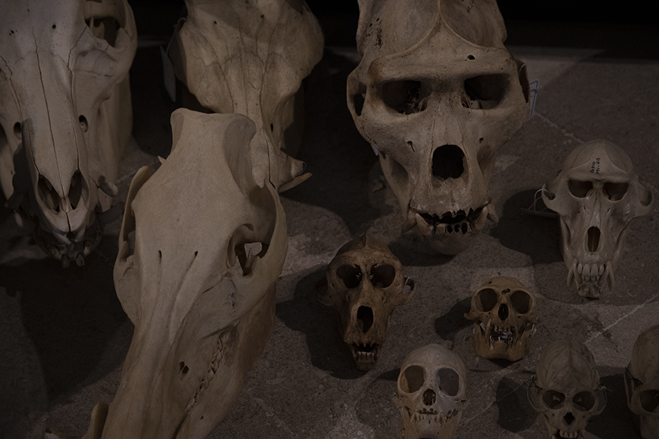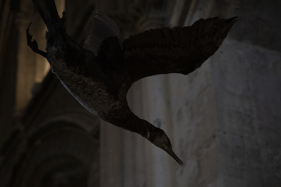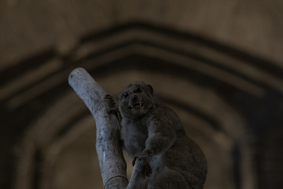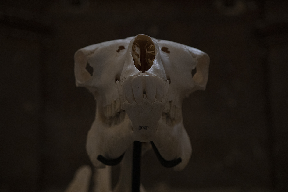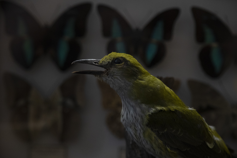 Cette série photographique propose moins de rendre compte du déballage saisissant et intelligent du conservateur que de faire état de ma mélancolie : l’exposition navigue entre l’arche de Noé (bien qu’incomplète, l’accumulation des espèces invite à prendre la mesure de la diversité des formes de vie et l’urgence de leur préservation) et l’avertissement crépusculaire de l’anéantissement de ces dernières.
