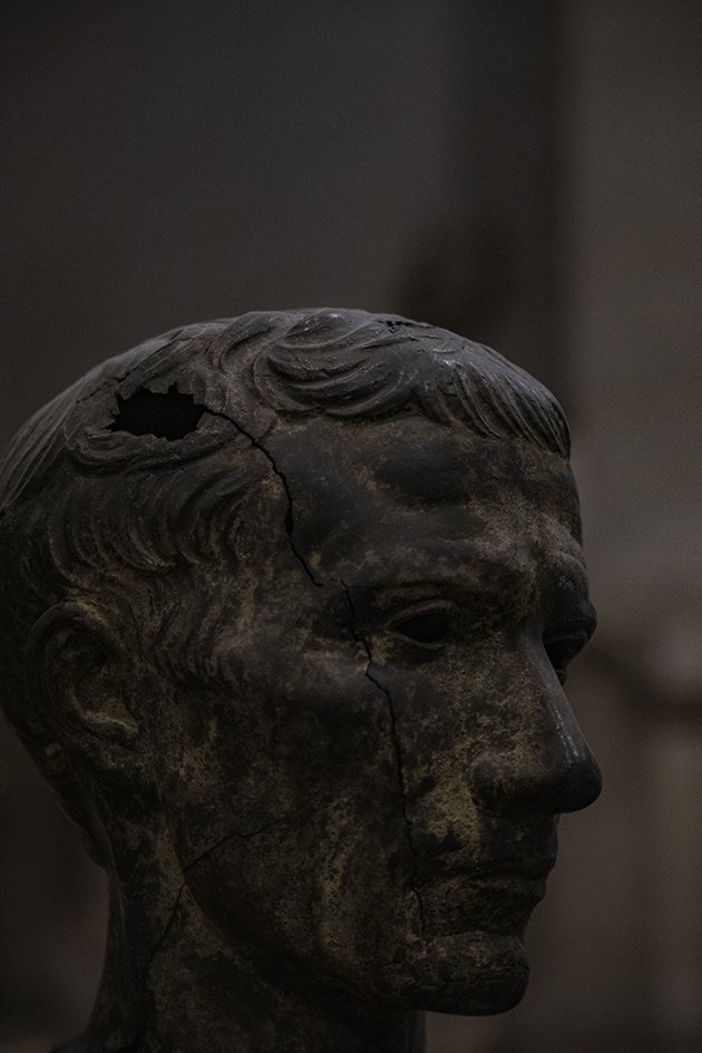 Tevah, nom hébraïque d’origine égyptienne de l’arche biblique, signifie autant bateau que coffre, boite ou cercueil. Qu’est-ce qu’un museum d’histoire naturelle sinon, en premier lieu, le sarcophage de collectionneurs ou d’amateurs de cabinets de curiosité ? C’est l’une des raisons pour lesquelles j’ai joint aux portraits des spécimens ceux du musée Lapidaire : des têtes d’hommes et femmes de l’antiquité dont l’inquiétude traverse jusqu’à nous l’ombre du passé.